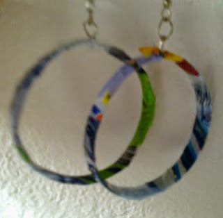 Nuevos Aros Argollas, realizados con arandelas de envases plásticos forradas con etiquetas o envoltorios plásticos.